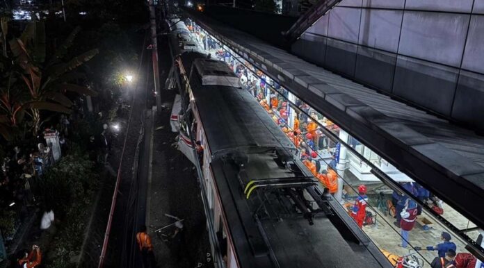 El accidente se produjo alrededor de las 20:57 hora local (GMT+7), cuando la locomotora de un tren de larga distancia impactó el último vagón de un convoy de cercanías, cerca de la estación ferroviaria Bekasi Timur, ubicada al este de la capital indonesia.