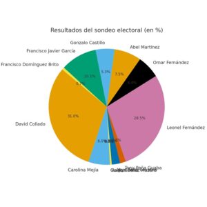 Santo Domingo, RD.- En un sondeo realizado en el canal de WhatsApp de Lo Último Digital, los seguidores fueron consultados sobre su preferencia electoral si las elecciones fueran hoy. Los resultados muestran un escenario competitivo, con David Collado liderando con 31.44% de los votos, seguido muy de cerca por Leonel Fernández con 28.91%.