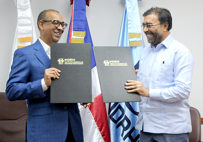 El ministro de Obras Públicas, Deligne Ascención, y el director ejecutivo del Instituto Nacional de Recursos Hidráulicos (INDRHI), Olmedo Caba, firmaron un convenio para iniciar la construcción del parqueo de 4,246.10 metros cuadrados.