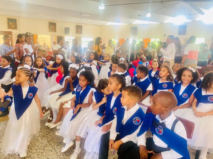 Santo Domingo Este, RD – El viernes pasado, la Escuela San Vicente de Paul, ubicada en el corazón de Los Mina, fue escenario de una conmovedora ceremonia de graduación de niños de seis años. El evento tuvo lugar en el salón parroquial de la Iglesia San Vicente y atrajo a cientos de padres y miembros del público en general. Los emocionados padres observaron orgullosos cómo sus pequeños desfilaban y daban un adiós lleno de gratitud a su etapa preescolar.