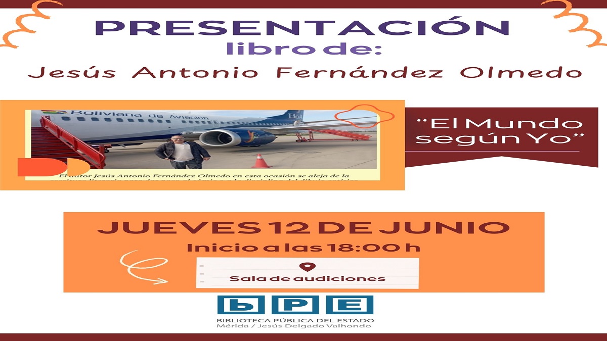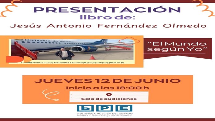 MÉRIDA, ESPAÑA – El próximo jueves 12 de junio a las 18:00 h, la Biblioteca Pública del Estado en Mérida acogerá la presentación del libro «El Mundo según Yo», del autor y activista social Jesús Antonio Fernández Olmedo.