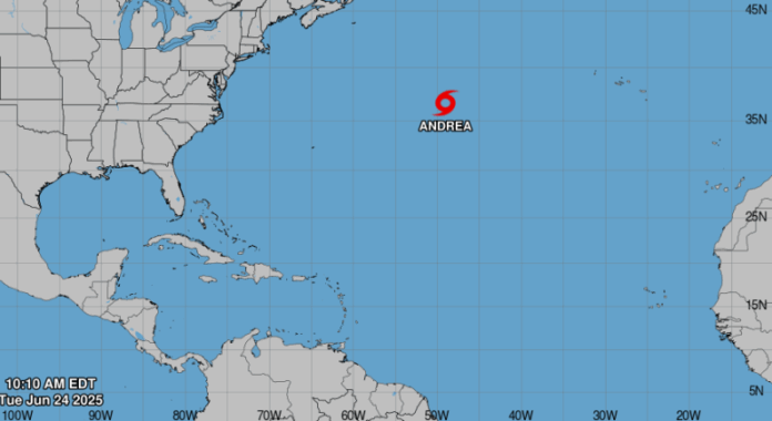 «Andrea se está moviendo hacia el este-noreste a cerca de 17 millas por hora (28 kilómetros por hora), y se espera que este movimiento continúe durante el próximo día más o menos», explicó el boletín del organismo del Servicio Meteorológico Nacional estadounidense (NWS, en inglés).
