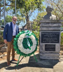 En compañía de los dirigentes Manuel (Ney) Almánzar, Coordinador de Campaña Adjunto de la Circunscripción No. 2 del Exterior y miembro de la Dirección Central, Iván Grullón, vicesecretario de Tecnología y Rafael Guerrero, presidente de la Fuerza del Pueblo en Costa Rica, Vladimir Pujols depositó una ofrenda floral en honor al Padre de la Patria ante el busto dedicado a su memoria, ubicado en pleno centro de San José, capital costarricense.